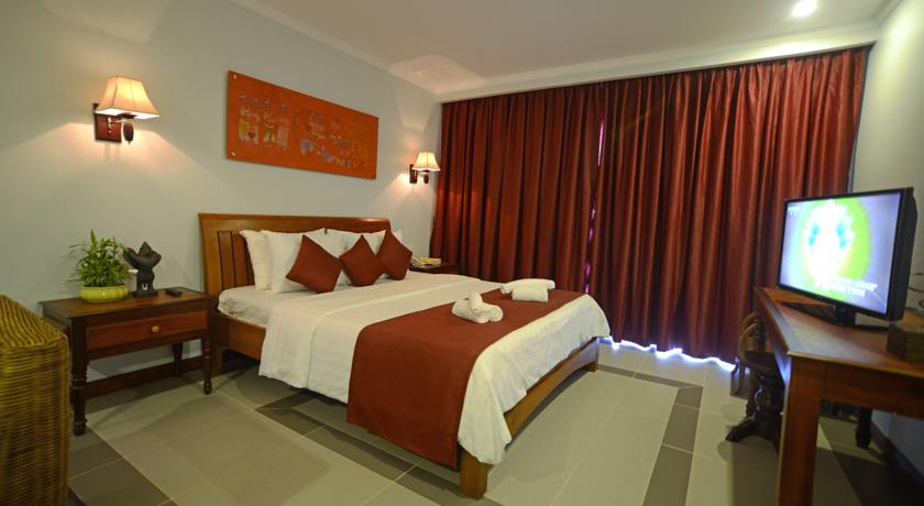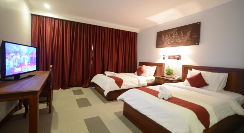 Air-conditioned rooms showcase Khmer-style designs and furnishing. A flat-screen satellite cable TV, a minibar, writing desk and coffee/tea making facilities are included.