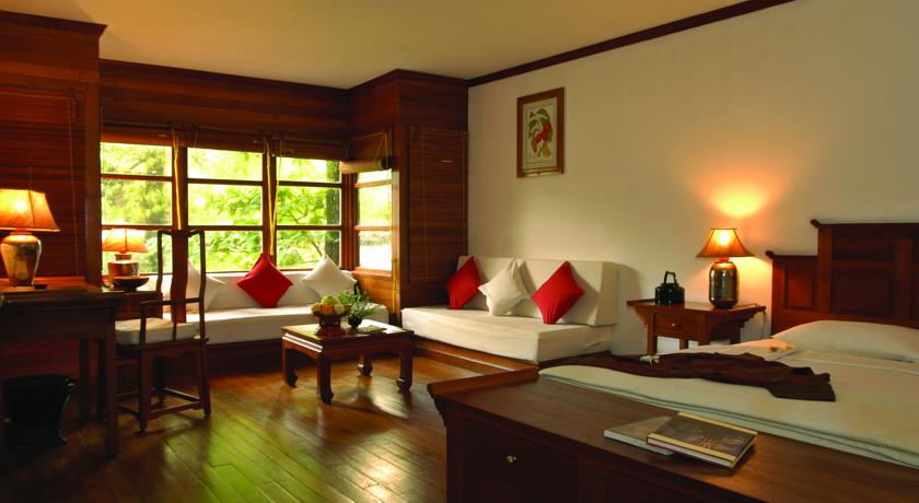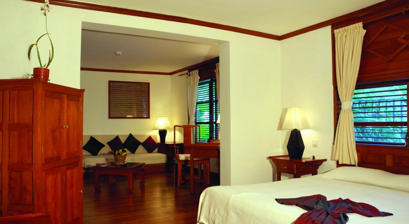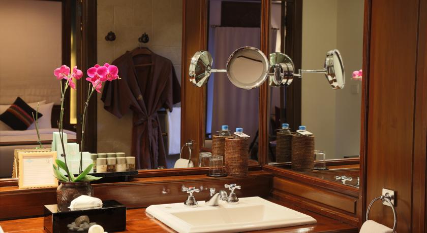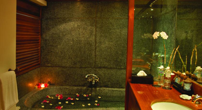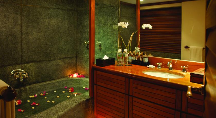 Teak furnishings and hardwood floors feature throughout rooms at The Governor’s. Each well-furnished room is equipped with a TV and a private bathroom with a large sunken bathtub.