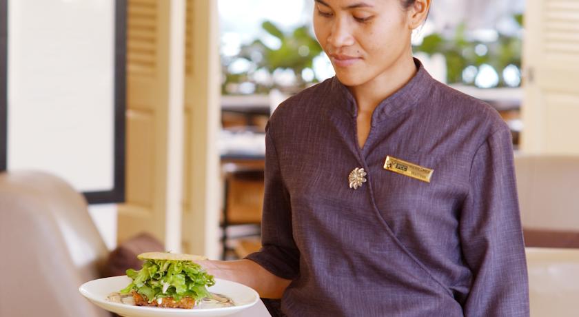 The FCC Angkor Kitchen Restaurant and Bar serves international dishes and features both indoor and outdoor dining by the pool.