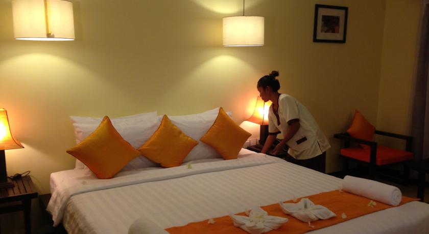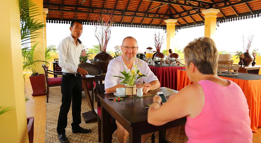 The rooftop restaurant serves Khmer and Western delights, while the bar offers up cocktails, refreshing drinks and light snacks. Room service is provided.